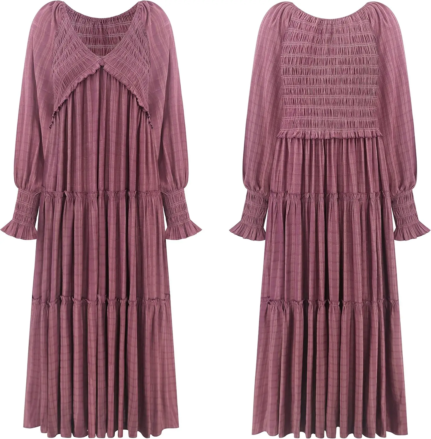 Women's Boho Style Casual Maxi Dress Chiffon Long Sleeves Empire Waist Layered Ruffles Solid Natural Waistline Woven Plain Dyed